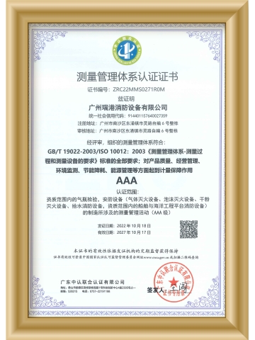 測(cè)量管理體系認(rèn)證證書