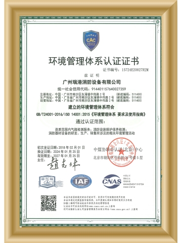 環(huán)境管理體系認(rèn)證證書